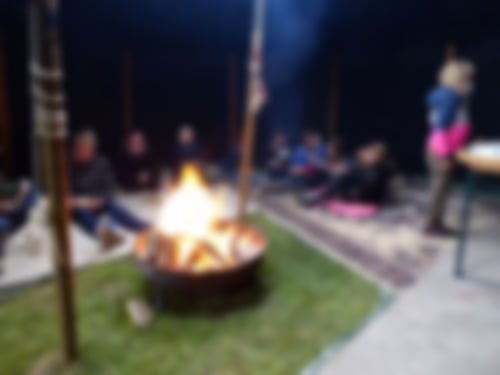 Am Sonntag wurde der Lagerplatz für den Besuchendentag geöffnet. Bei Kaffee, Kuchen, Mitmachaktionen und einem Gottesdienst konnten Gäste Lagerluft schnuppern – wetterbedingt allerdings überwiegend im großen Zelt, was der guten Stimmung jedoch keinen Abbruch tat. Am Abend, nachdem die Besuchenden das Lager wieder verlassen hatten, fanden in jedem Stamm die traditionellen Stammesabende mit Aufnahmen in den Stamm und Hochstufungen in die nächste Pfadfinderstufe statt – ein emotionaler, bedeutungsvoller Moment und für viele ein Highlight des Lagers. Bei dem Stamm VCP St. Andreas wurde im Anschluss wie üblich Chai getrunken.